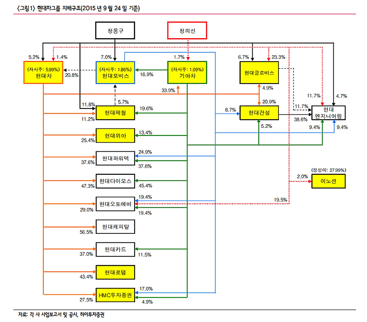 정의선 부회장 글로비스 지분 팔아 자금 마련 기아차 등이 보유한 모비스 지분 사 순환출자 해소 현대차그룹이 현대모비스를 인정분할해 존속. 현대차그룹 지배구조 총정리 바로가기 클릭!!! 실제로 정 명예회장은 현대차 5.3%, 현대모비스 7.1%, 현대글로비스 6.7%, 현대제철 11.8% 등을 보유해 지분가치는 지난 18일 기준 5조4900억원에 달한다. 이 과정에서 지분 11.72%를 보유한 비상장사 현대eng도 자금줄 역할을 할 수 있다. 정 회장이 보유한 현대글로비스 지분 23.29%는 이날 종가기준 1조6111억원에 이른다.